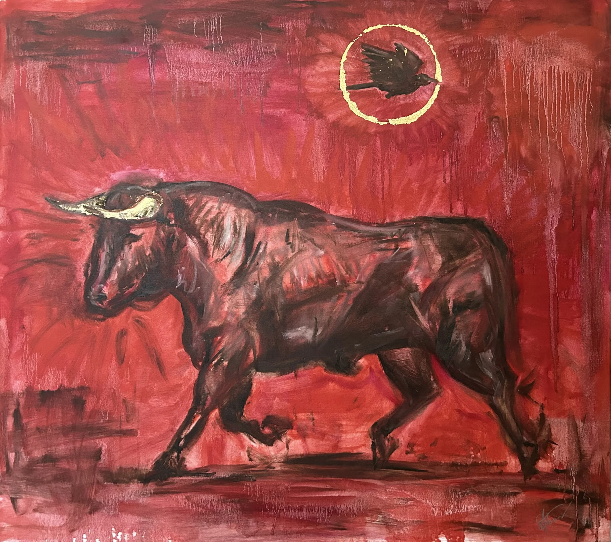 Oil and gold leaf on canvas; measurements pending - approximately 42×36”. Original available - $1600.